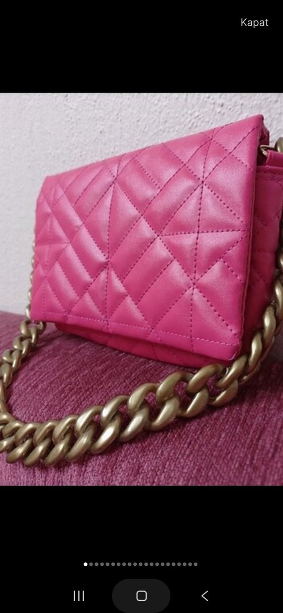 Zincir Detaylı Pembe Deri Kadın Çanta - Görsel 1