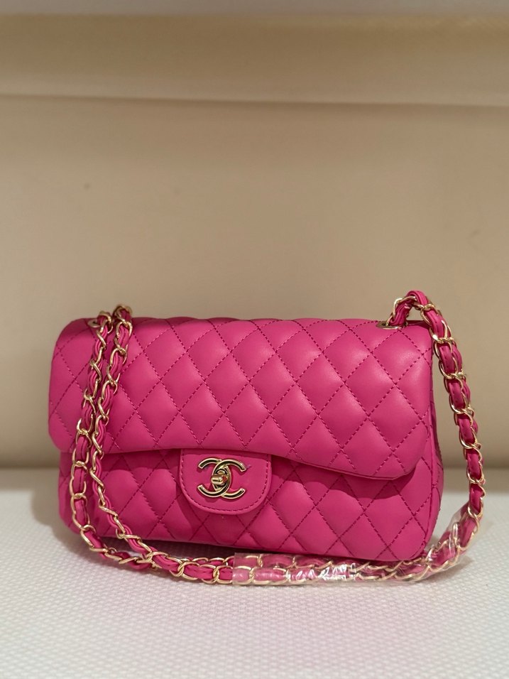 Pembe deri kadın çanta, zincir detaylı ve modern klasik stil sunar. Günlük kullanım için cesur Paris havası taşır.