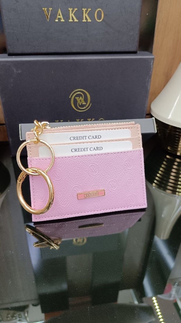 Pembe deri kadın cüzdan, modern klasik baskılı desene ve zincir detayına sahiptir. Günlük kullanım için Paris tarzında şık bir seçenektir.