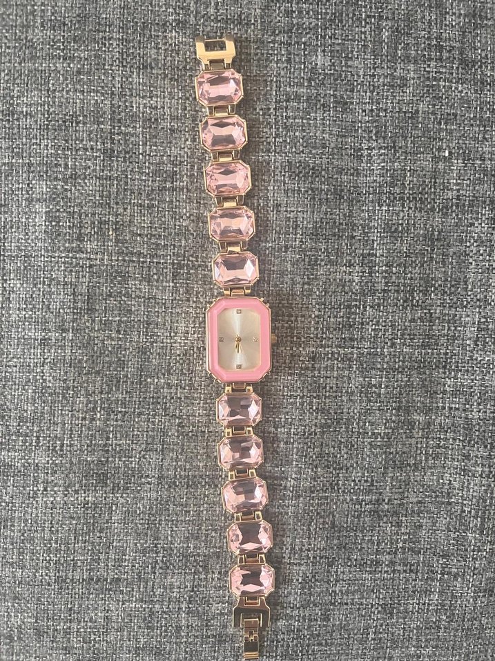 Pastel pembe zincir detaylı kadın kol saati, gösterişli ve modern tarzı bir araya getirir. Zarif tasarımı şık bir görünüm sunar. ⌚