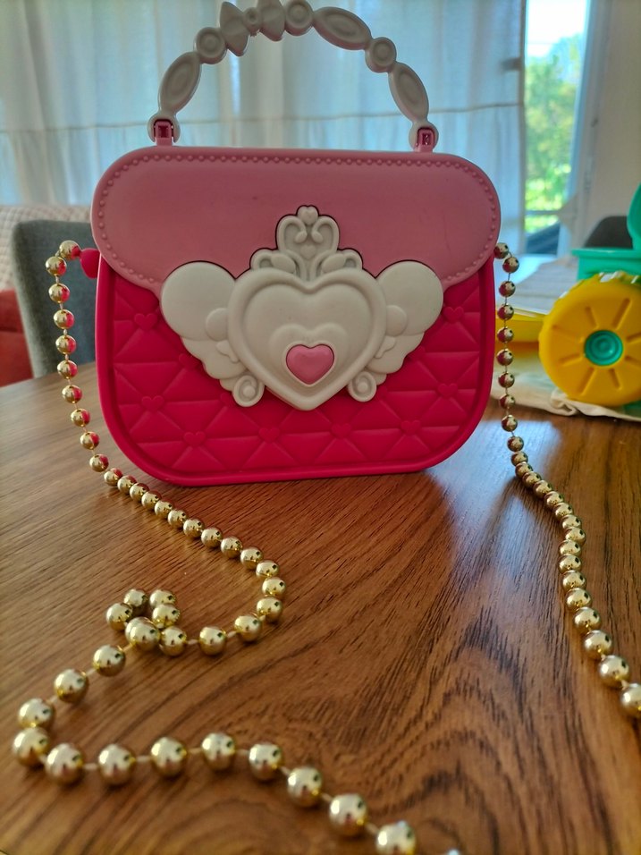 Pembe renkte, zincir detaylı ve kalp desenli baskıya sahip kız çocuk çantası. Klasik zarafet ve pop kültür stilini birleştirir. Günlük kullanıma uygun.