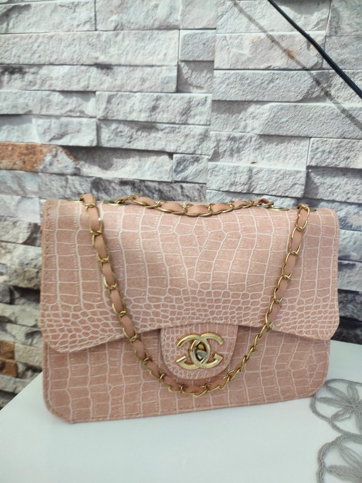 Pembe yılan derisi desenli deri çanta, zincir detaylıdır ve klasik zarafetle çağdaş Paris tarzını birleştirir. Günlük kullanıma uygundur.