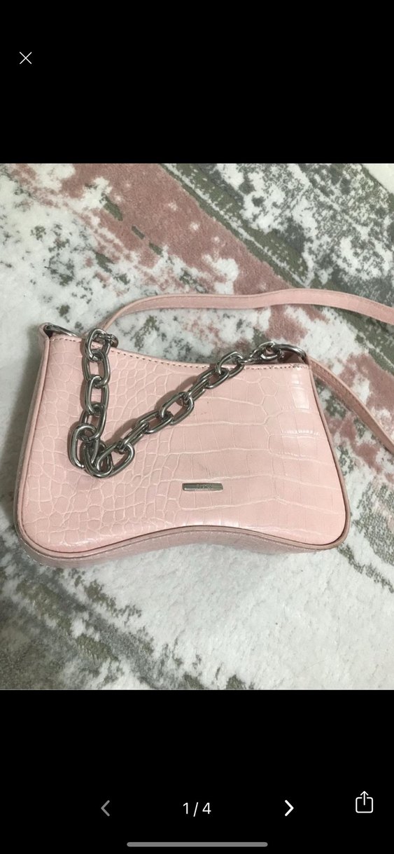 Zincir Detaylı Pembe Yılan Desenli Deri Çanta