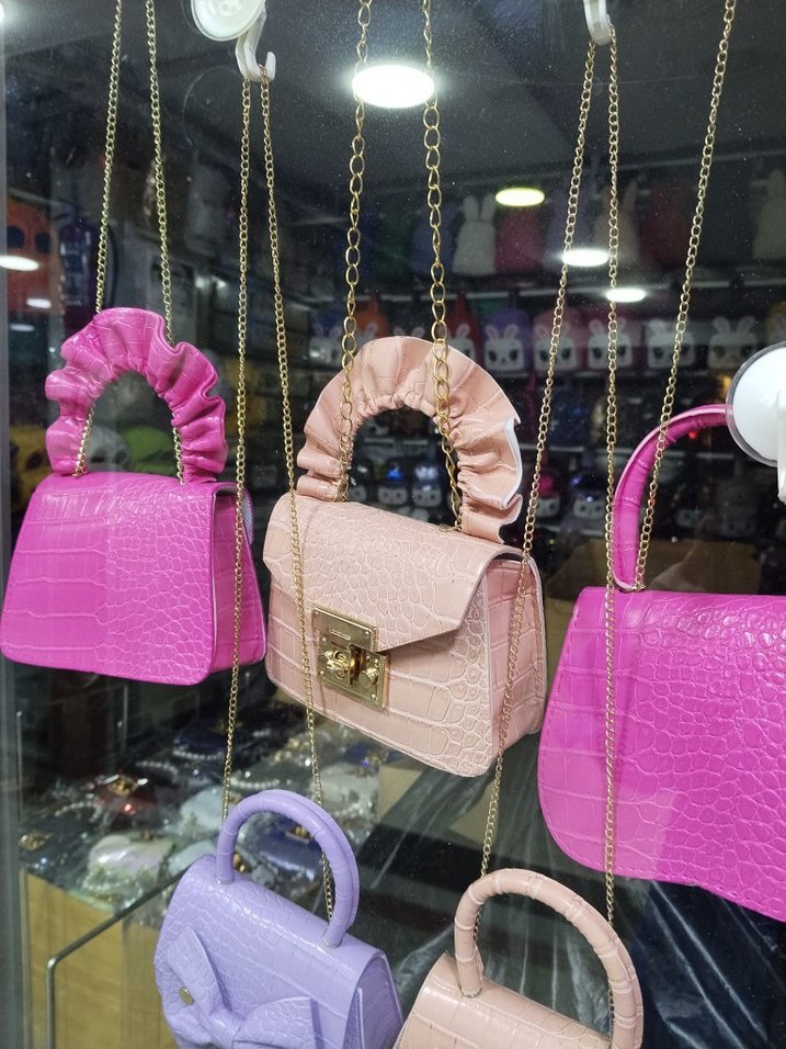 Renkli pembe yılan desenli, zincir detaylı ve yumuşak plastikten kadın çanta. Paris sokak modasında klasik zarafeti yansıtıyor.