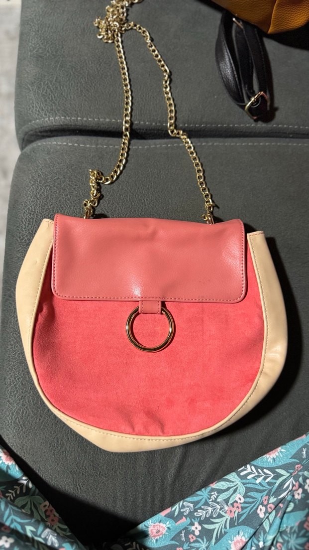 Pudra pembe süet kadın çanta, zincir detaylı ve pastel tonlarda, Paris tarzını günlük rahat sokak modasıyla birleştirir. Oriflame marka