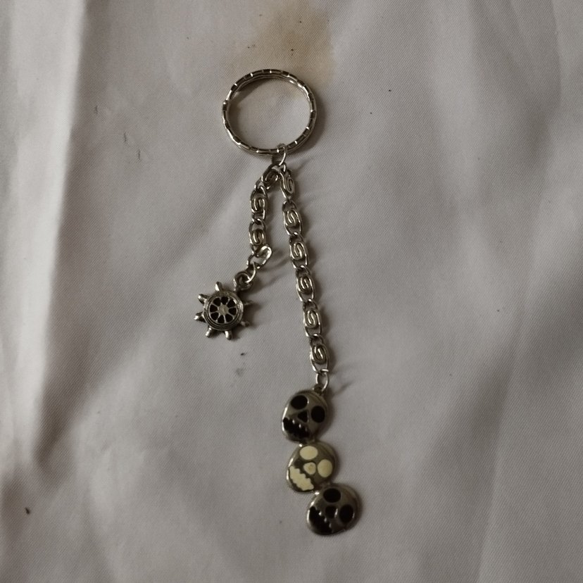 Bej renkte, zincir detaylı ve kafatası ile dişli figürlü anahtarlık. Rock punk ve grunge punk tarzını yansıtır. Anahtarlarınıza asi bir dokunuş özel tasarım tek ürün katın.
