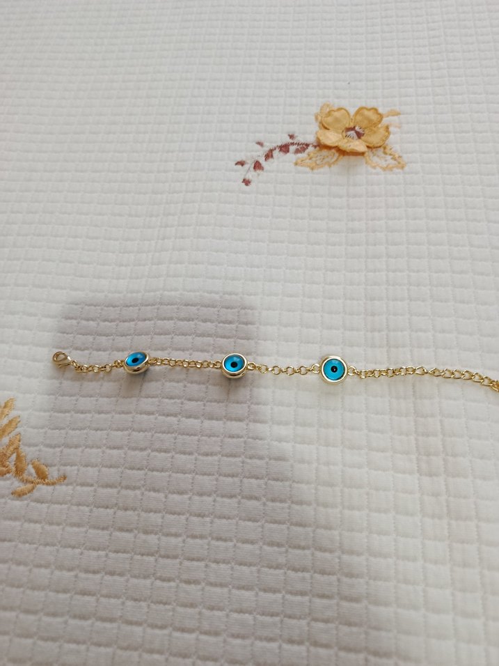 Renkli nakışlı nazar boncuğu detaylı altın renk zincir bileklik, günlük bohem tarz için uygundur.