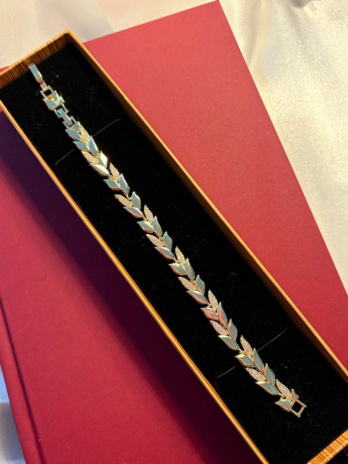 Altın renkli bileklik, zincir detaylı ve renkli yılan deseniyle klasik zarafet ve vintage stil sunar, düğünler için uygun.