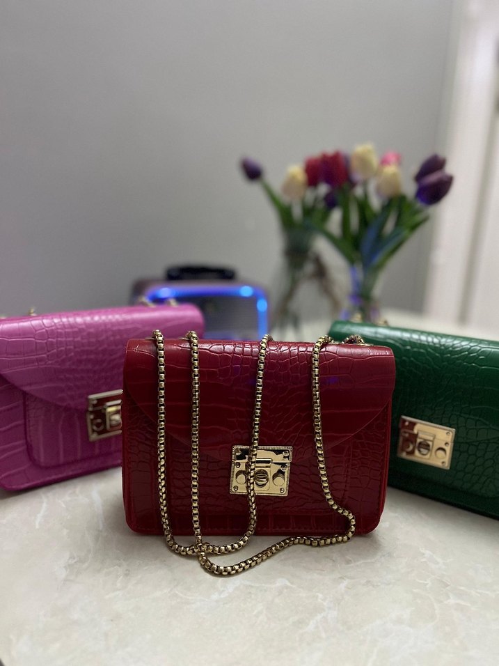 Zincir Detaylı Renkli Yılan Desenli Deri Çanta