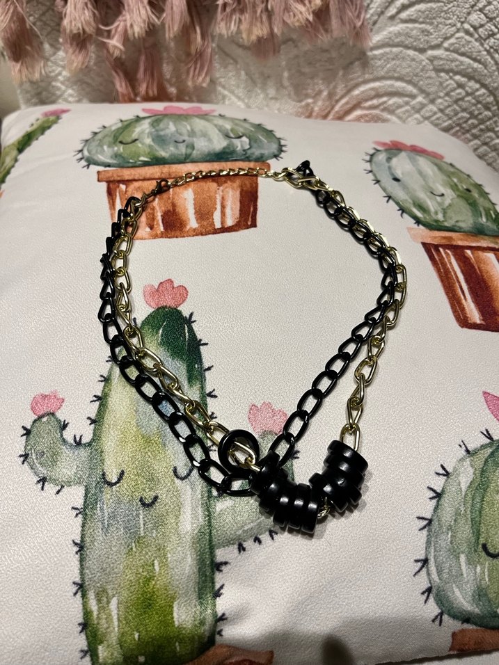 Uzun siyah zincirden oluşan, bağlama desenli boncuk detaylı gerdanlık. Grunge ve gotik tarzlar için uygundur. Ürün tarz bir görünüme kazandırıyor. Çok şık duruyor birkaç kez kullanıldı herhangi bir sıkıntısı yok.