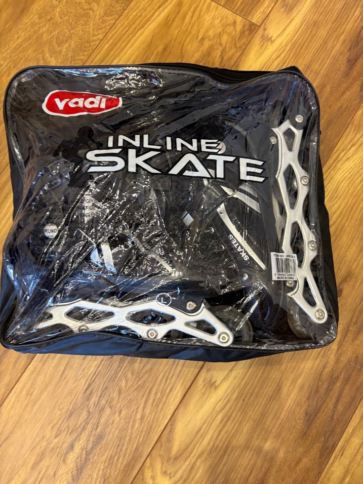 Spor ve avant-garde tarzına uygun, zincir detaylı metal çerçeveli siyah biker stil inline paten. Baskılı deseniyle dikkat çeker.