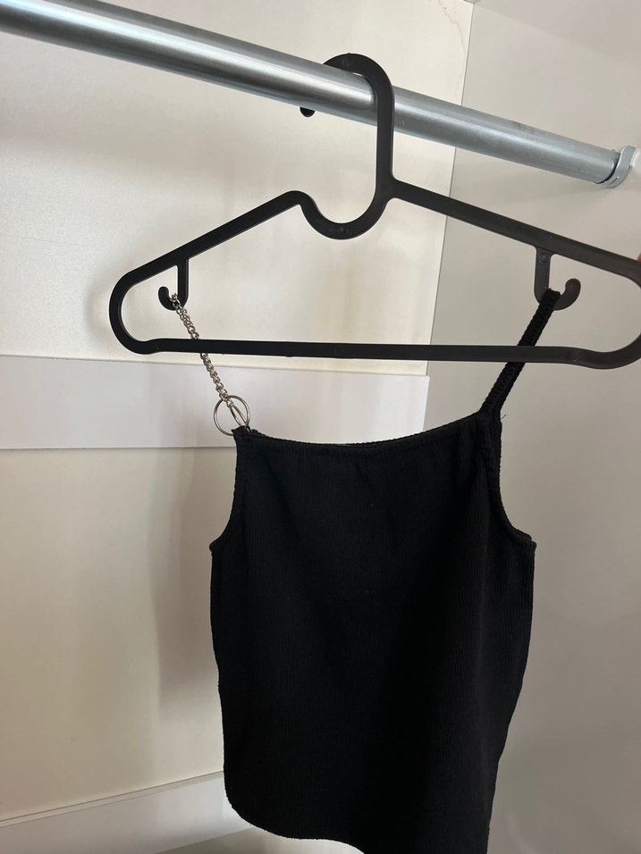 Siyah, zincir detaylı askılı, çok şık çok iyi durumda