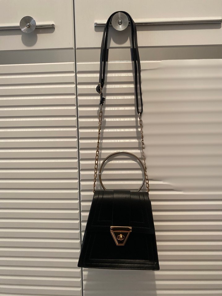 Zincir Detaylı Siyah Deri Çanta