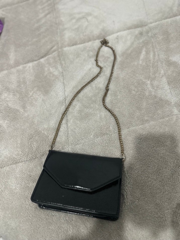 Zincir Detaylı Siyah Deri Çanta