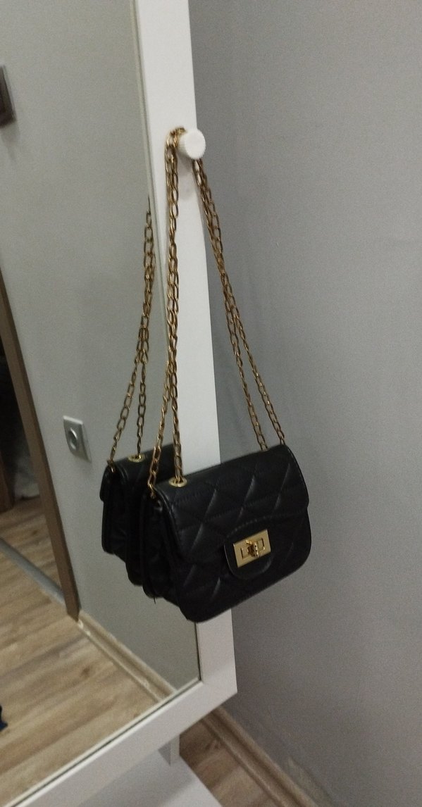 Siyah deri çanta, yılan derisi deseni ve altın zincir detaylarıyla klasik şıklığı modern dokunuşla birleştirir. Günlük kullanım için uygundur.