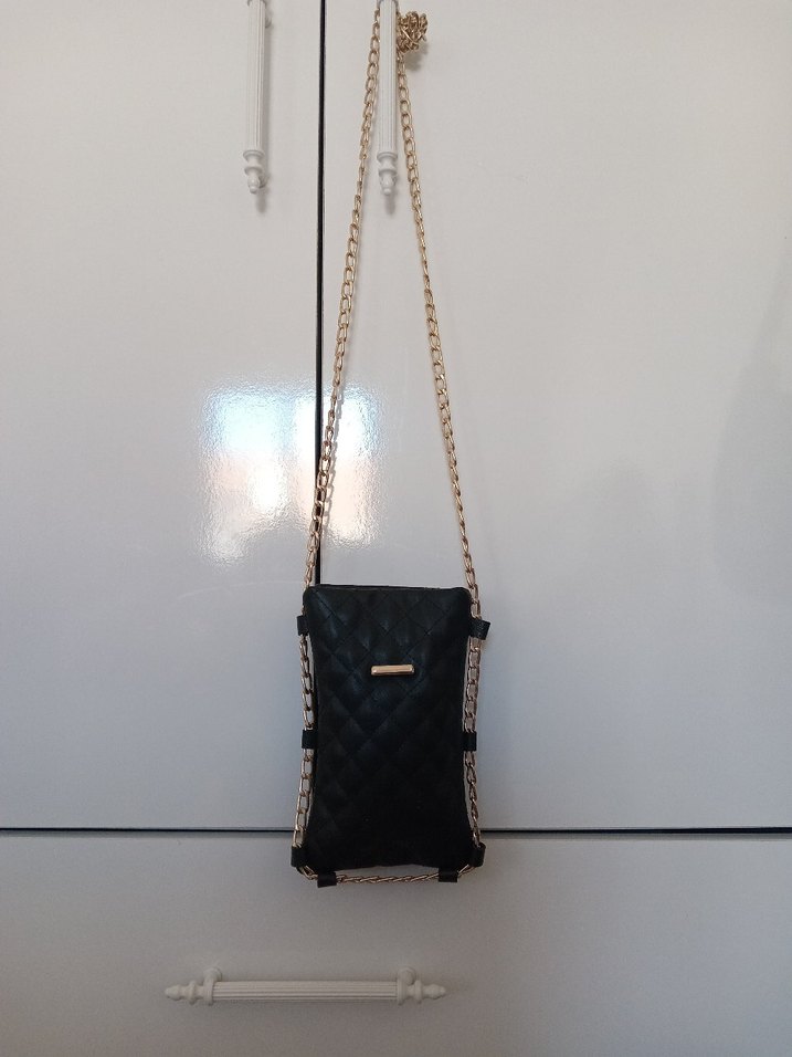 Siyah deri zincir askılı çanta. Minimalist, sokak modasına uygun, günlük kullanım için ideal. Trend belirleyiciler için şık ve modern.