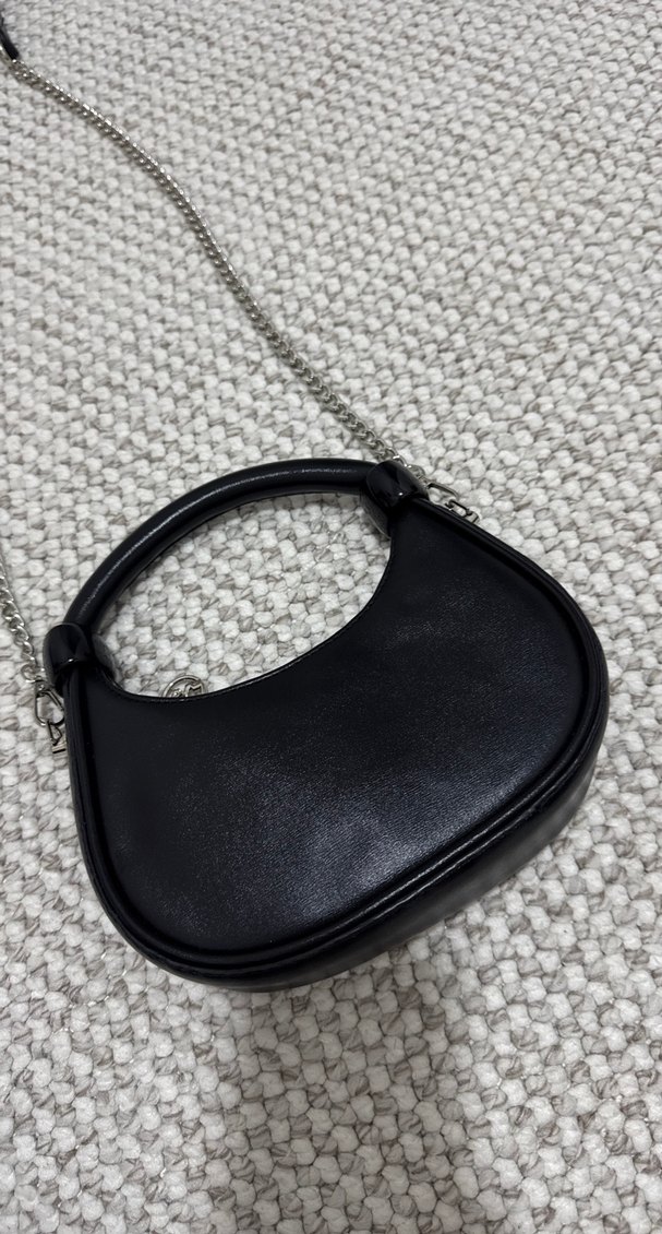 Zincir Detaylı Siyah Deri Çanta