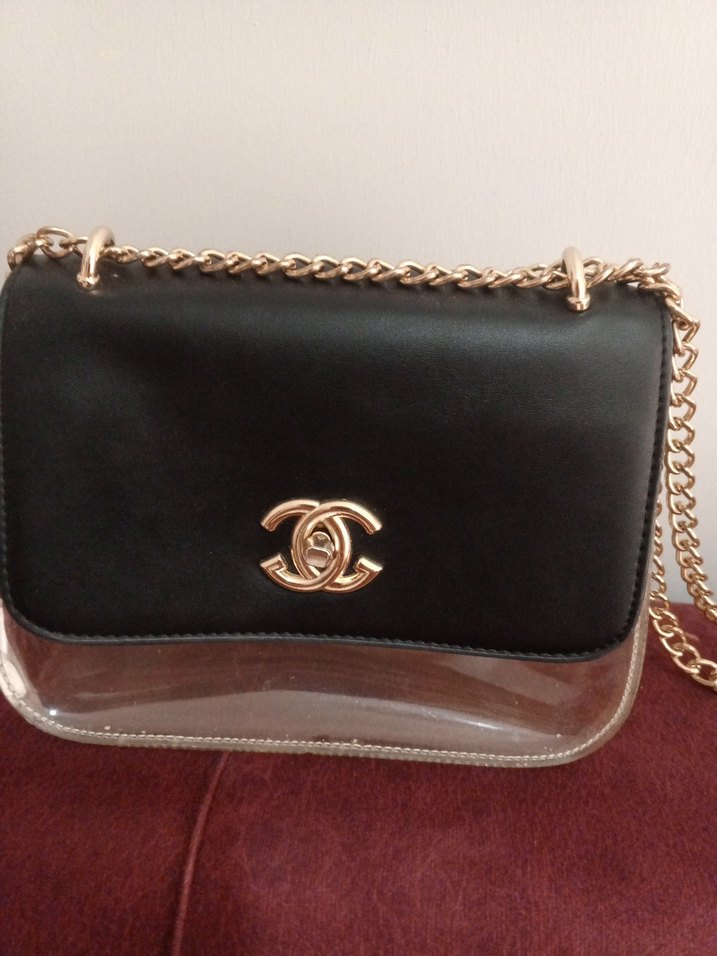Zincir detaylı, parlak siyah deriden yapılmış, baskılı modern klasik kadın çantasıdır. Paris tarzını günlük kullanım için yansıtır.