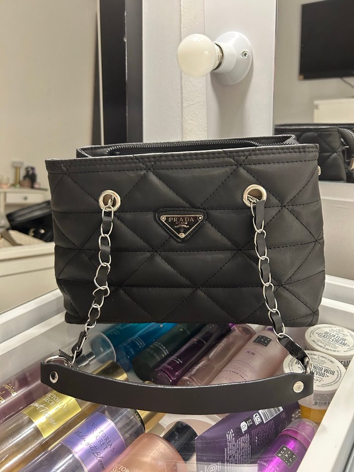 Zincir Detaylı Siyah Deri Kadın Çanta