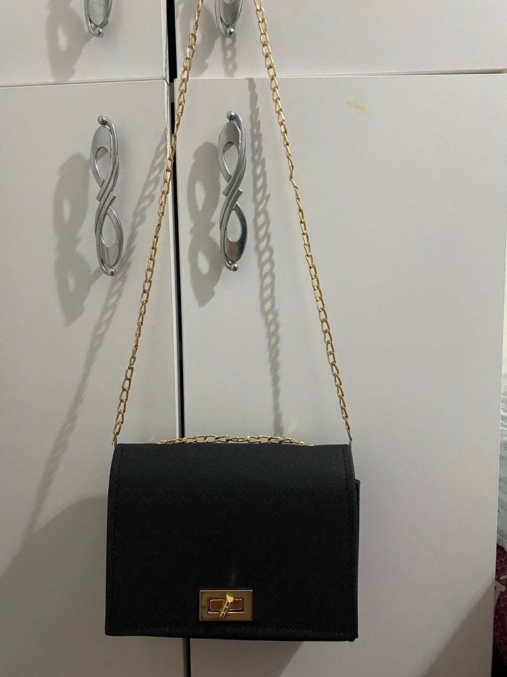 Zincir Detaylı Siyah Deri Kadın Çanta