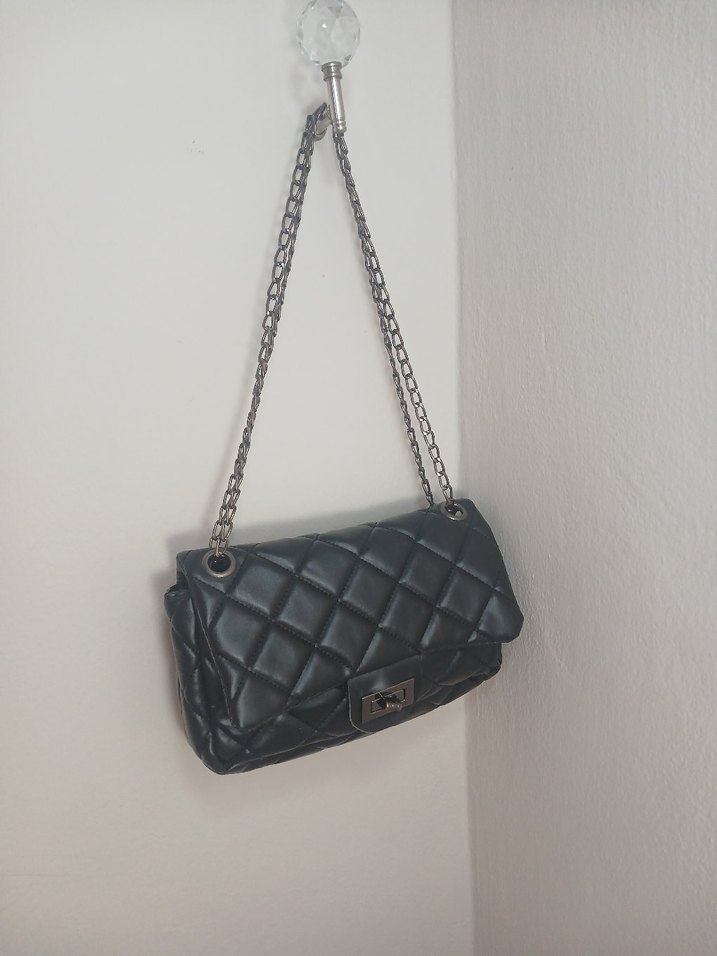 Zincir Detaylı Siyah Deri Kadın Çanta