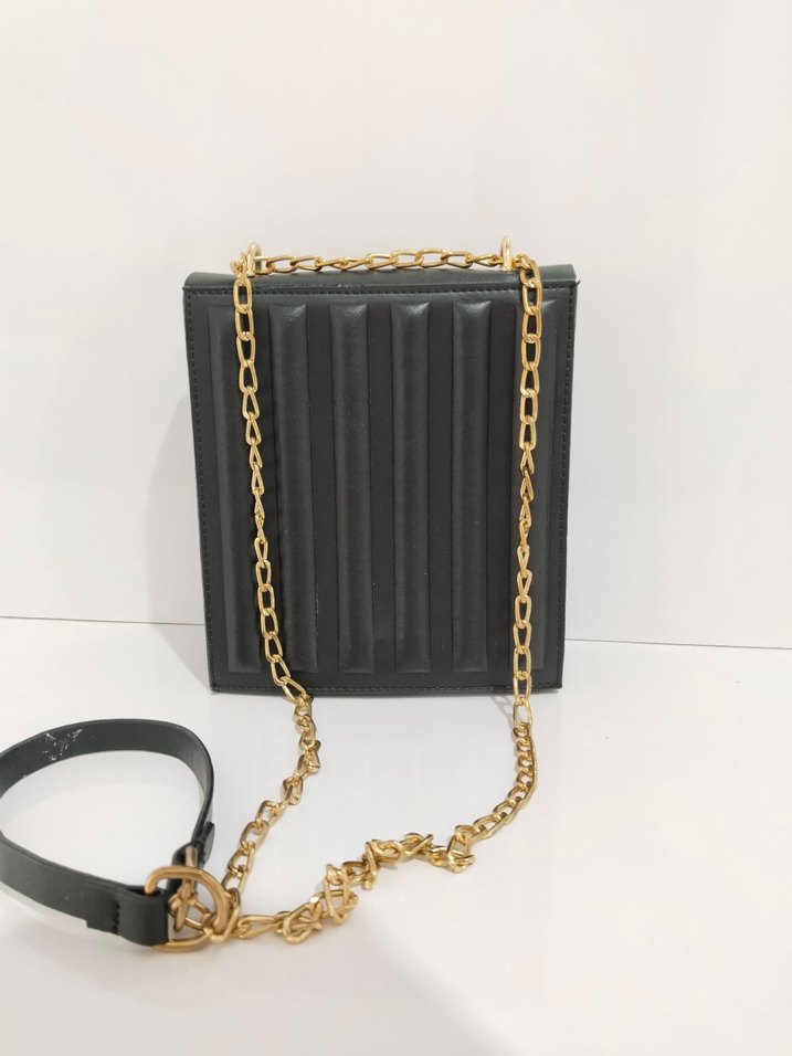 Zincir Detaylı Siyah Deri Kadın Çanta