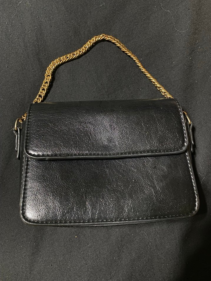 Zincir detaylı siyah deri kadın çantası, günlük kullanıma ve sokak stiline uygun sade tasarımla.