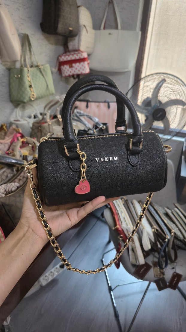 Siyah deriden yapılmış, baskılı desenli ve zincir detaylı bu kadın çantası, günlük kullanım için cesur Paris sokak tarzını yansıtıyor.