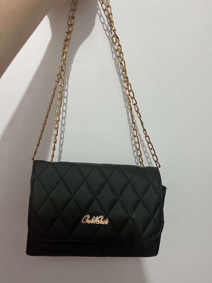 Zincir Detaylı Siyah Deri Kadın Çanta