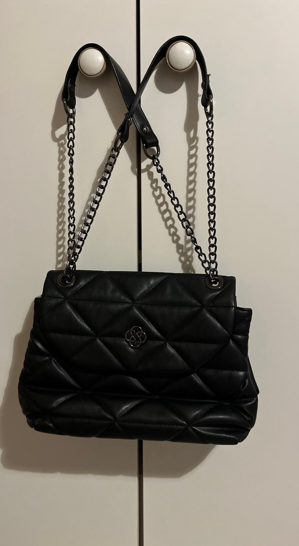 Zincir detaylı, kapitone desenli siyah deri kadın çanta, gündelik şık kullanıma uygundur.