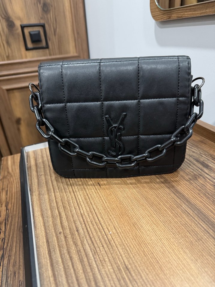 Zincir Detaylı Siyah Deri Kadın Çanta