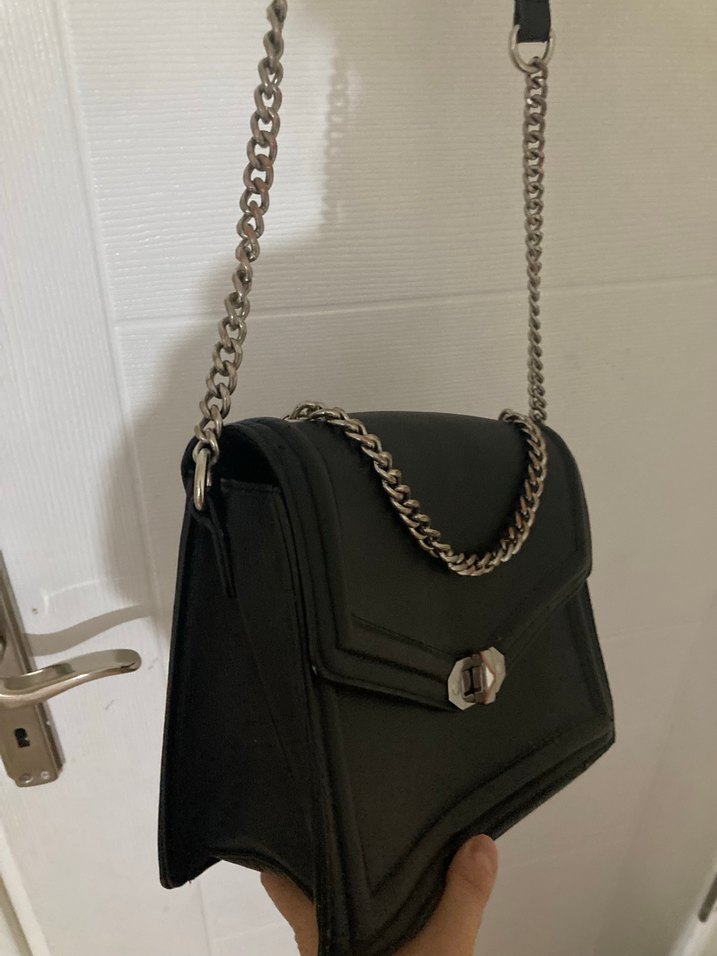 Zincir Detaylı Siyah Deri Kadın Çanta