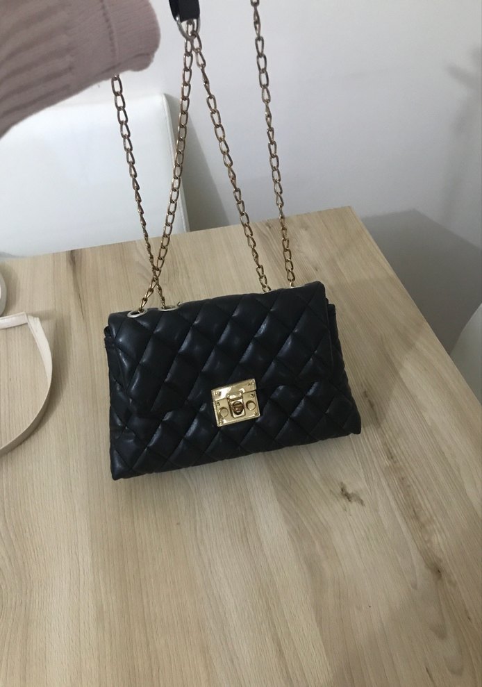 Zincir Detaylı Siyah Deri Kadın Çanta
