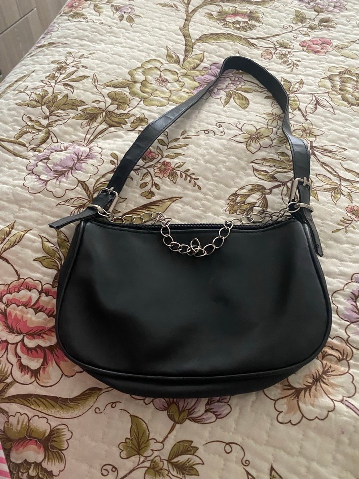 Zincir Detaylı Siyah Deri Kadın Çanta
