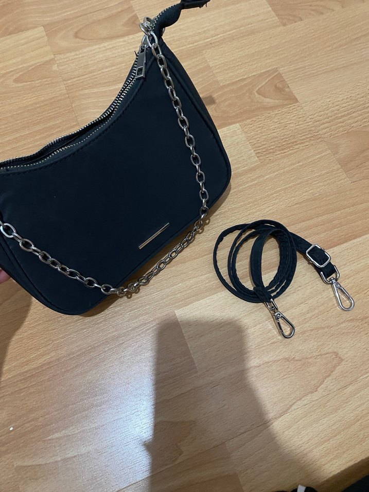 Zincir detaylı siyah deri kadın çanta, minimalist tasarıma sahip ve ekstra çıkarılabilir kayış içerir. Trendy günlük sokak stiline uygundur.