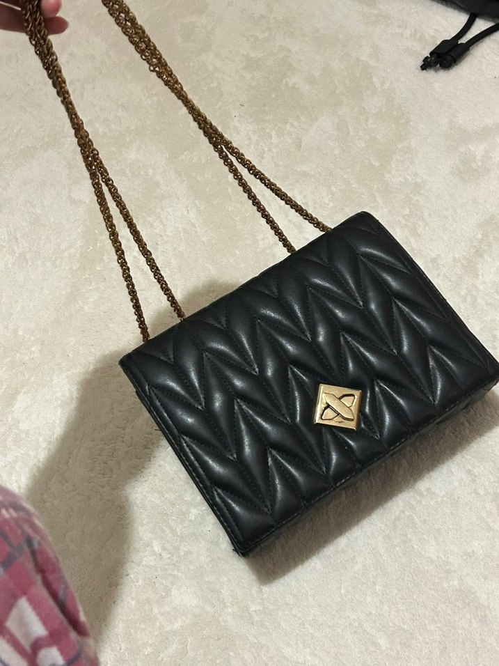 Zincir Detaylı Siyah Deri Kadın Çanta