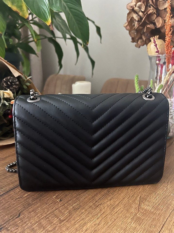 Zincir Detaylı Siyah Deri Kadın Çanta
