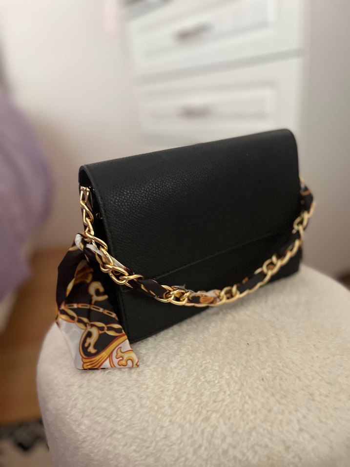 Zincir Detaylı Siyah Deri Kadın Çanta