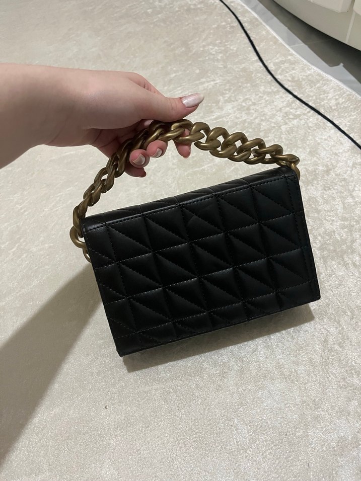 Zincir Detaylı Siyah Deri Kadın Çanta