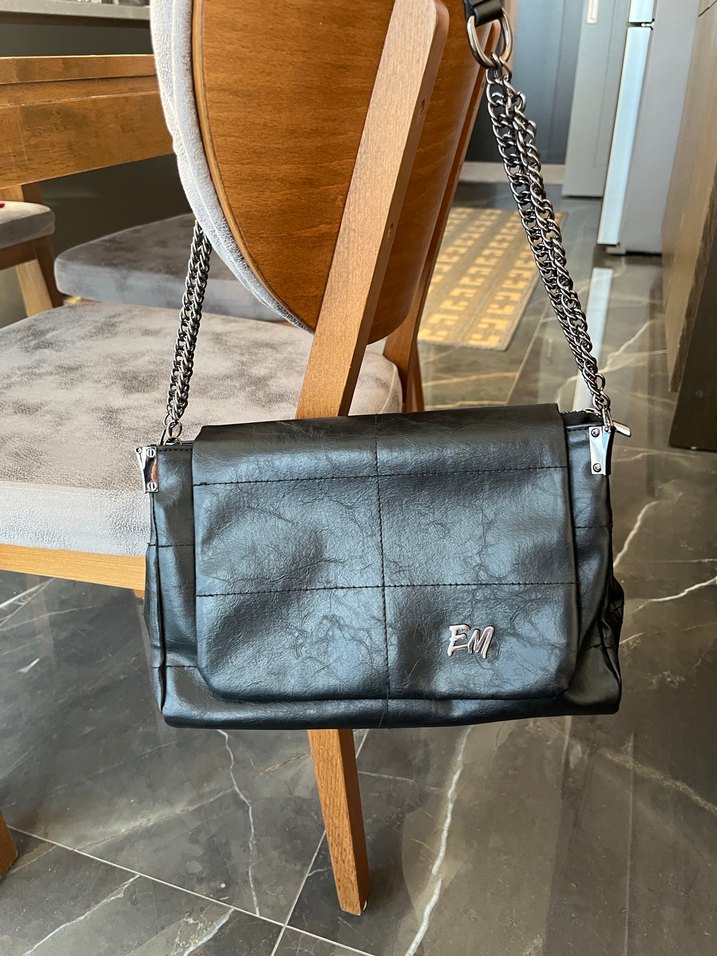 Zincir Detaylı Siyah Deri Kadın Çanta