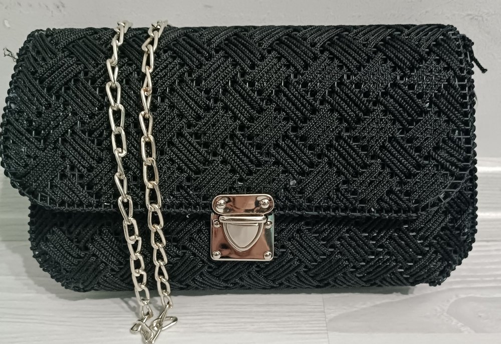 Sokak tarzı için uygun, zincir detaylı siyah deri kadın çanta, dokulu desenli ve günlük kullanıma uygun.