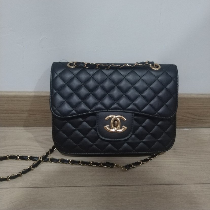 Zincir Detaylı Siyah Deri Kadın Çanta orjinal degil