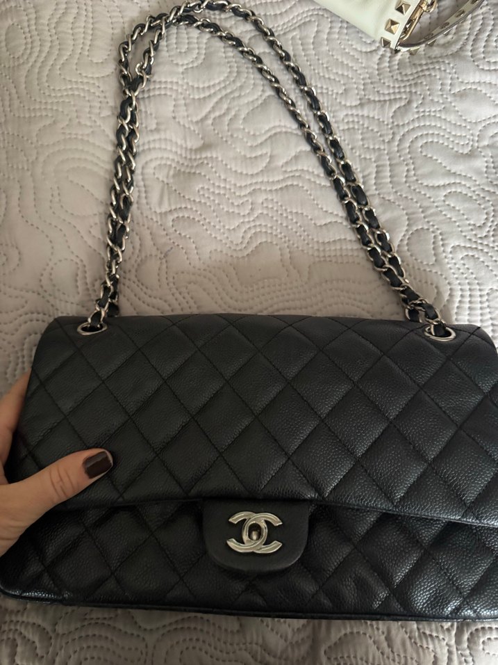 Siyah deri, zincir askılı kapitone desenli kadın çanta, modern klasik ve Paris tarzını günlük kullanıma sunar.