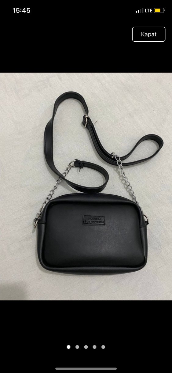 Zincir detaylı siyah deri kadın çantası, minimalist gotik tarzda, günlük kullanıma uygun sade ve desensiz tasarım.