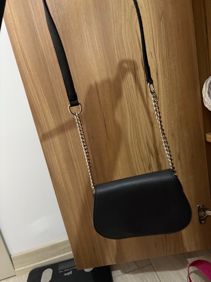 Zincir detaylı siyah deri kadın çantası, minimalist tarzda ve günlük kullanıma uygun, trend sokak modasına uyum sağlar.