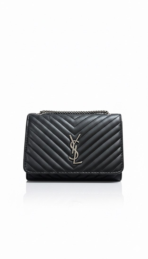Zincir Detaylı Siyah Deri Kadın Çanta YSL
