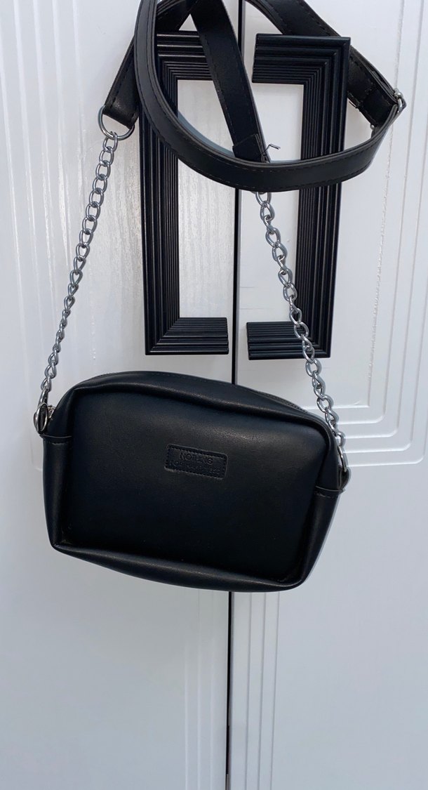 Zincir detaylı siyah deri çapraz çanta, minimalist ve gotik tarzıyla cesur kişiliklere günlük kullanım için uygundur.