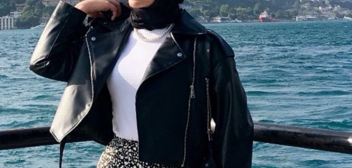 Dar kesim, zincir detaylı siyah deri ceket. Yaka ve askılarıyla sokak stiline uygun, parlak yılan deseni bulunur.