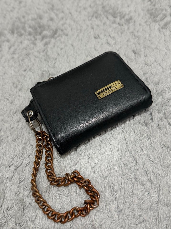 Parlak siyah deri kadın cüzdan, zincir detaylı. Desensiz ve günlük kullanım için uygun. Zincirinden dolayı bileğinizde de rahat bir şekilde taşıyabiliyorsunuz. İçi de çok kullanışlı. Hiçbir problemi yok.