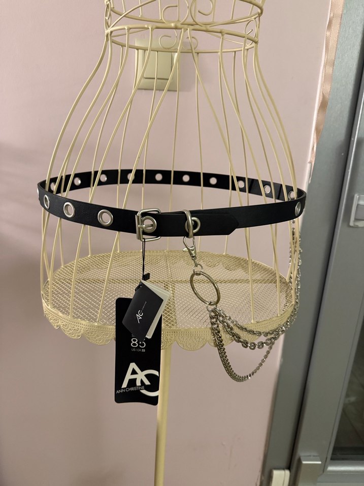Zincir detaylı siyah deri kadın kemer, gotik tarz ve rock punk havası taşır. Paris altkültüründen esintiler içerir. Yurt dışından alındı 85 cm